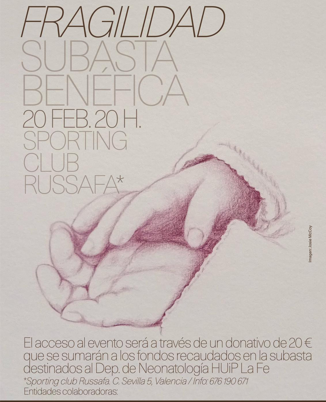 Bay’s paintings were seen and sold last night at the highly successful exhibition “Fragilidad” at Valencia’s Sporting Club Russafa art space. Proceeds from the auction will be donated to the neonatal department in the city’s La Fe hospital.