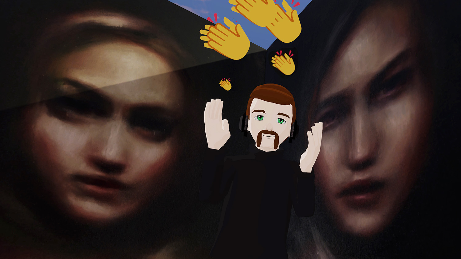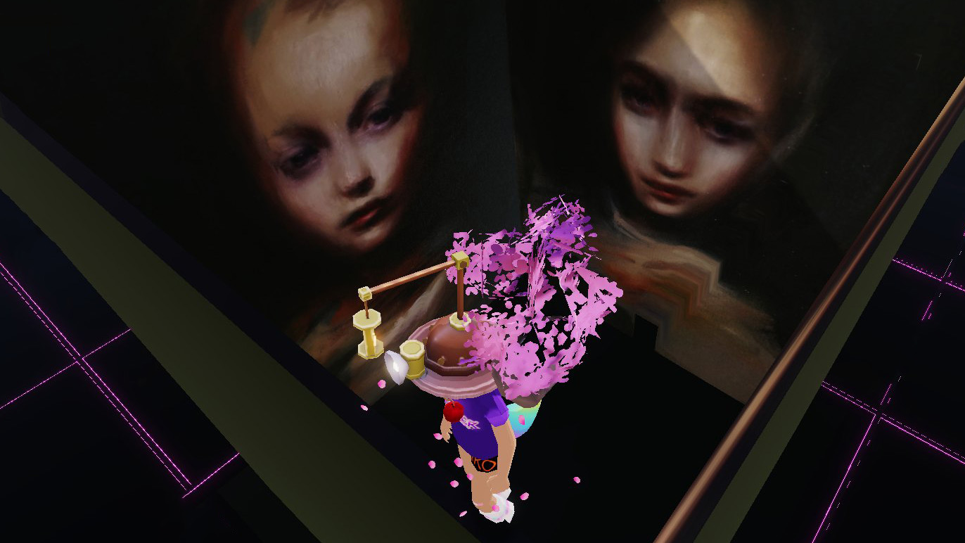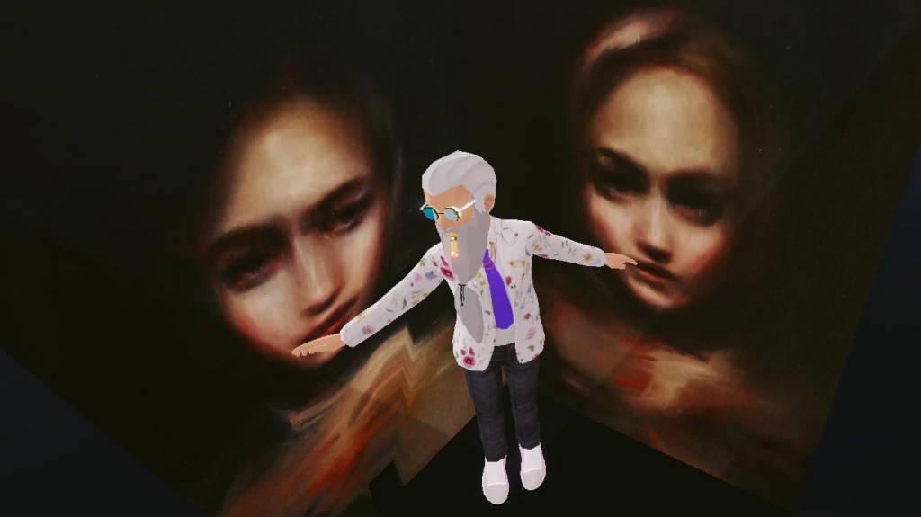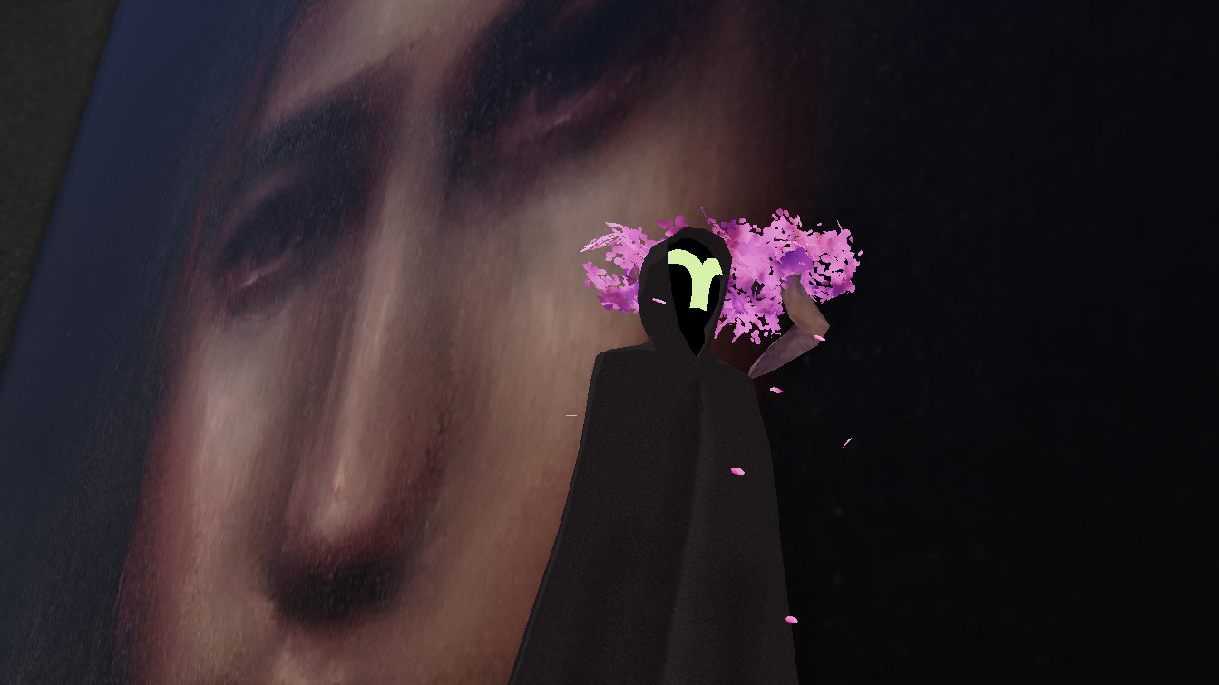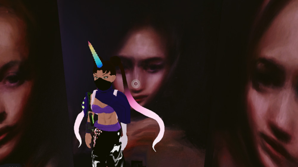 Bay invited the Decentraland community to interpret Muses 2 with their own selfies, which were then reshared during the duration of the performance on the @vueltta twitter account. She subsequently created the curated edit of the selfies below. Bay sees this gallery of community-artist images as part of the wider performance.