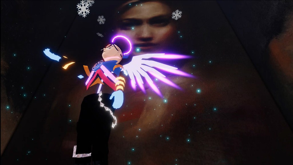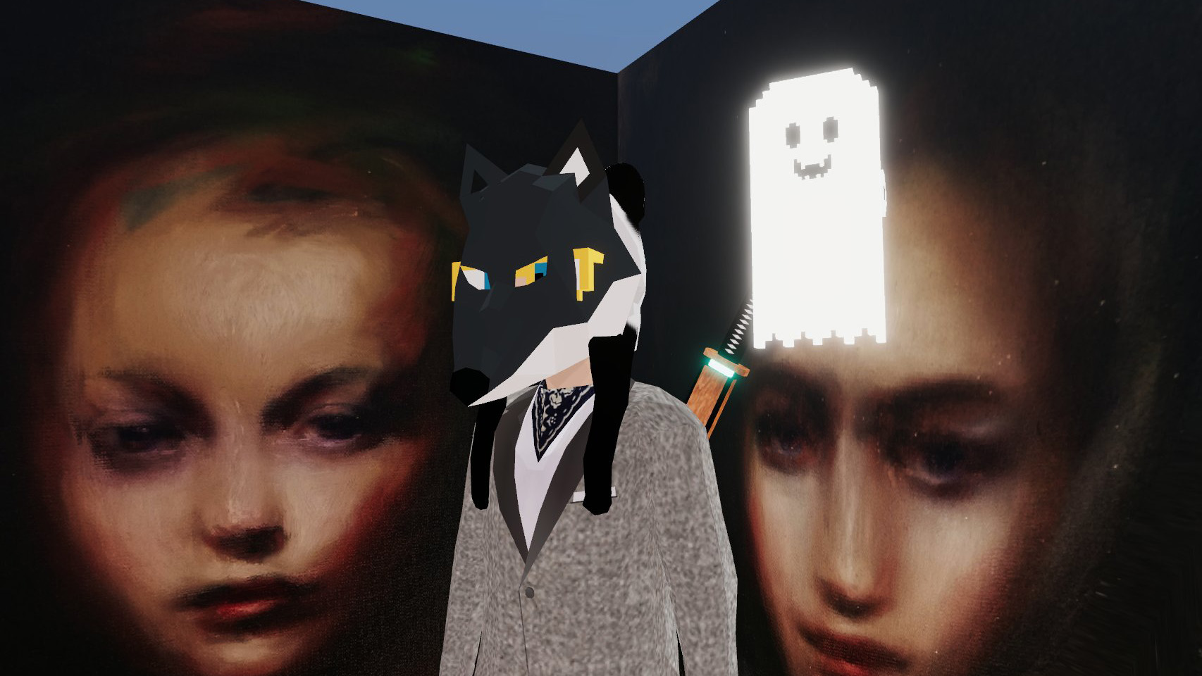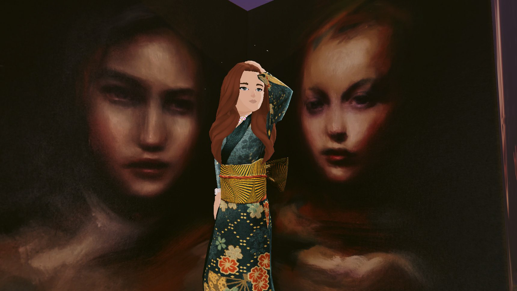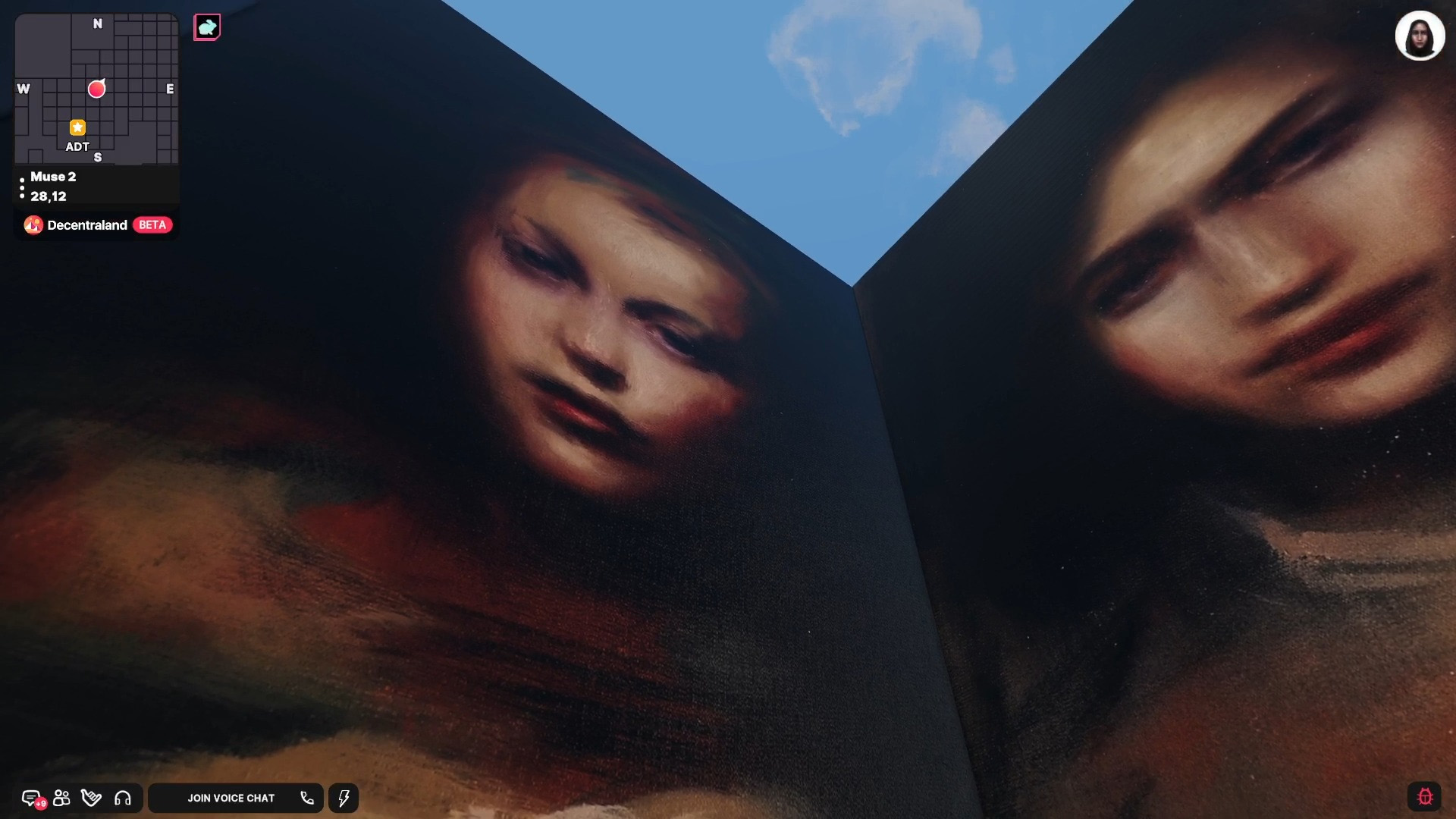 Bay invited the Decentraland community to interpret Muses 2 with their own selfies, which were then reshared during the duration of the performance on the @vueltta twitter account. She subsequently created the curated edit of the selfies below. Bay sees this gallery of community-artist images as part of the wider performance.
