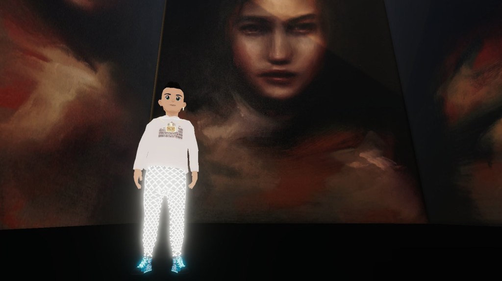 To create Muses 2, Bay painted four AI-generated ‘muses’ using IRL Renaissance techniques, then converted the paintings into digital textures. She then collaborated with artists in Vueltta to transform the textures into metaverse forms.