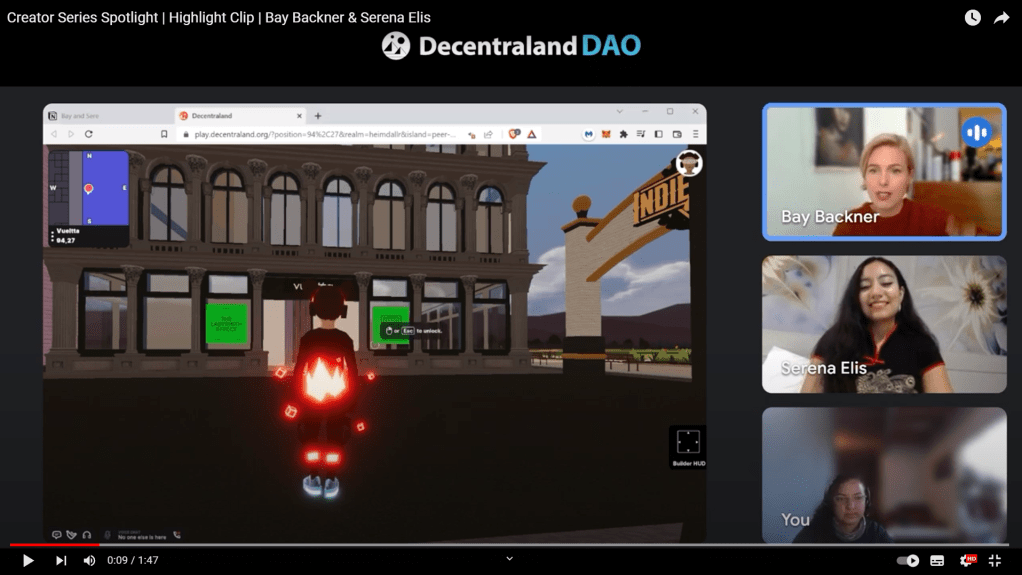 Bay was honored to be interviewed this week for Decentraland DAO’s Creator Series. You can watch the full interview via Youtube above, or catch up on the highlight clip below.