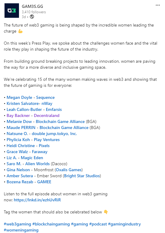 Gam3s.gg Includes Bay in its Celebration of Women In Web3