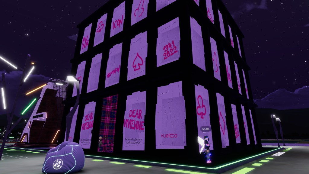 Dear Vivienne ran from 28.03.23 – 01.04.23 for Metaverse Fashion Week 2023 (#MVFW23). It was installed in Decentraland’s NEO Fashion Plaza alongside brands including Coach, Adidas and Tommy Hilfiger.