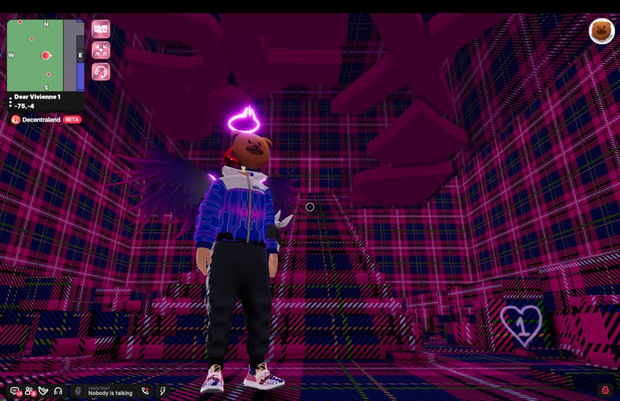Dear Vivienne ran from 28.03.23 – 01.04.23 for Metaverse Fashion Week 2023 (#MVFW23). It was installed in Decentraland’s NEO Fashion Plaza alongside brands including Coach, Adidas and Tommy Hilfiger.