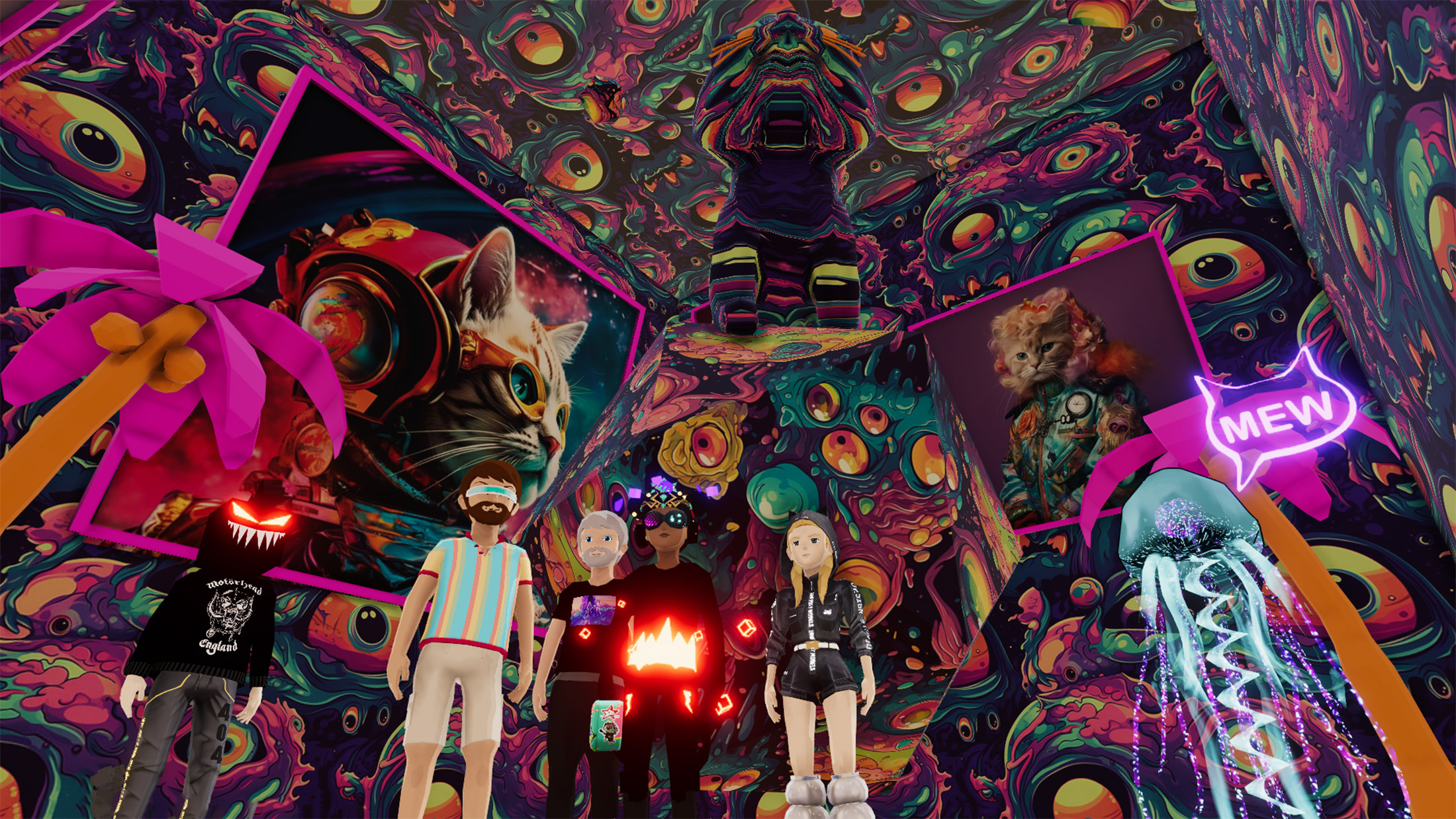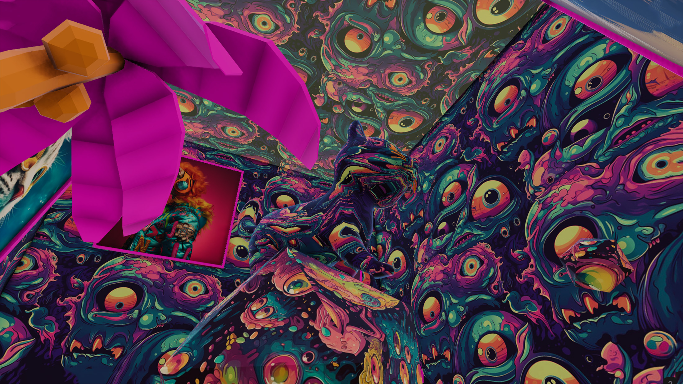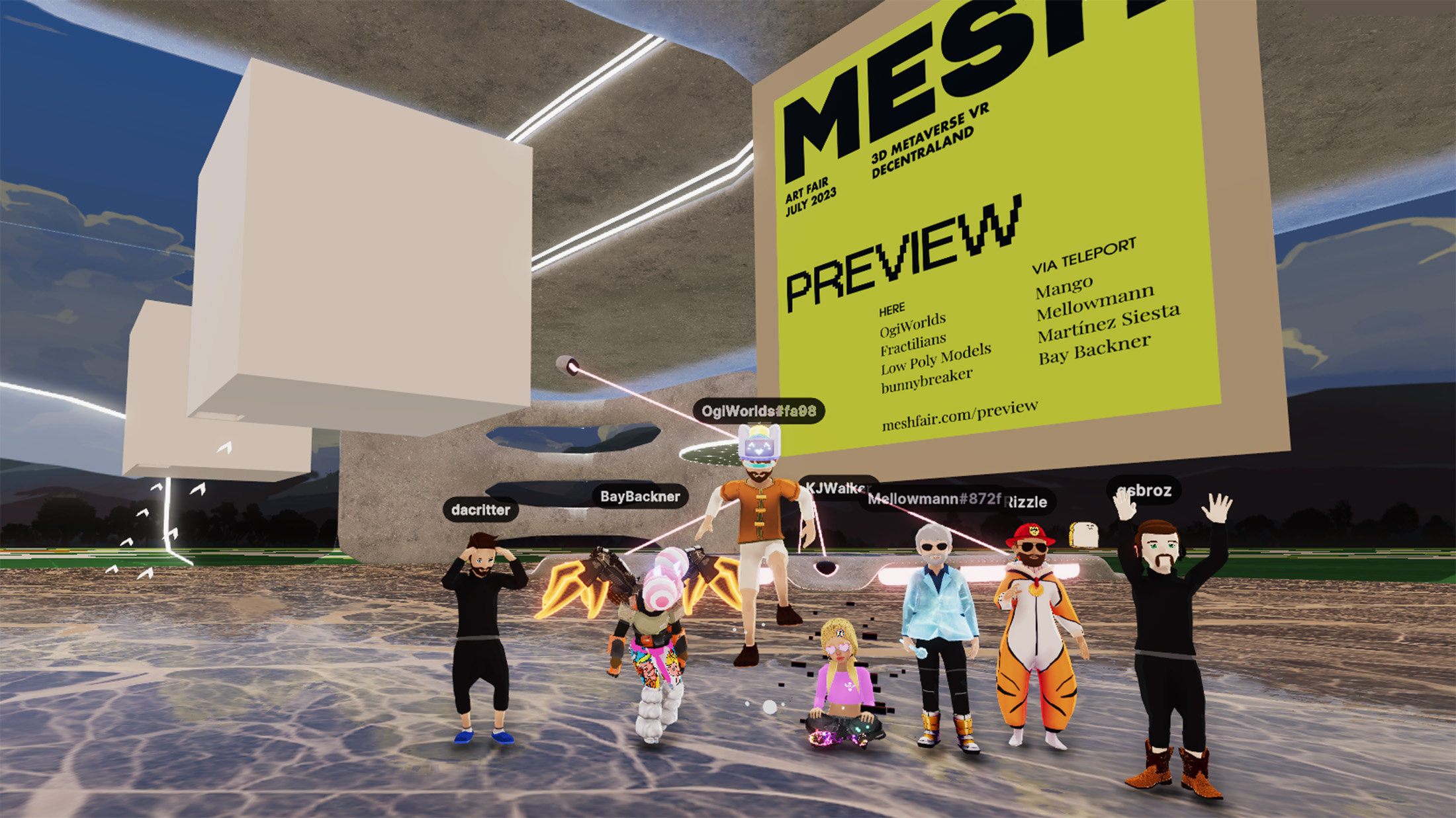 Installation artists: Mellowmann, Mango, Fractilians, bunnybreaker, OgiWorlds, Adrián Martínez, KJ Walker, Bay Backner