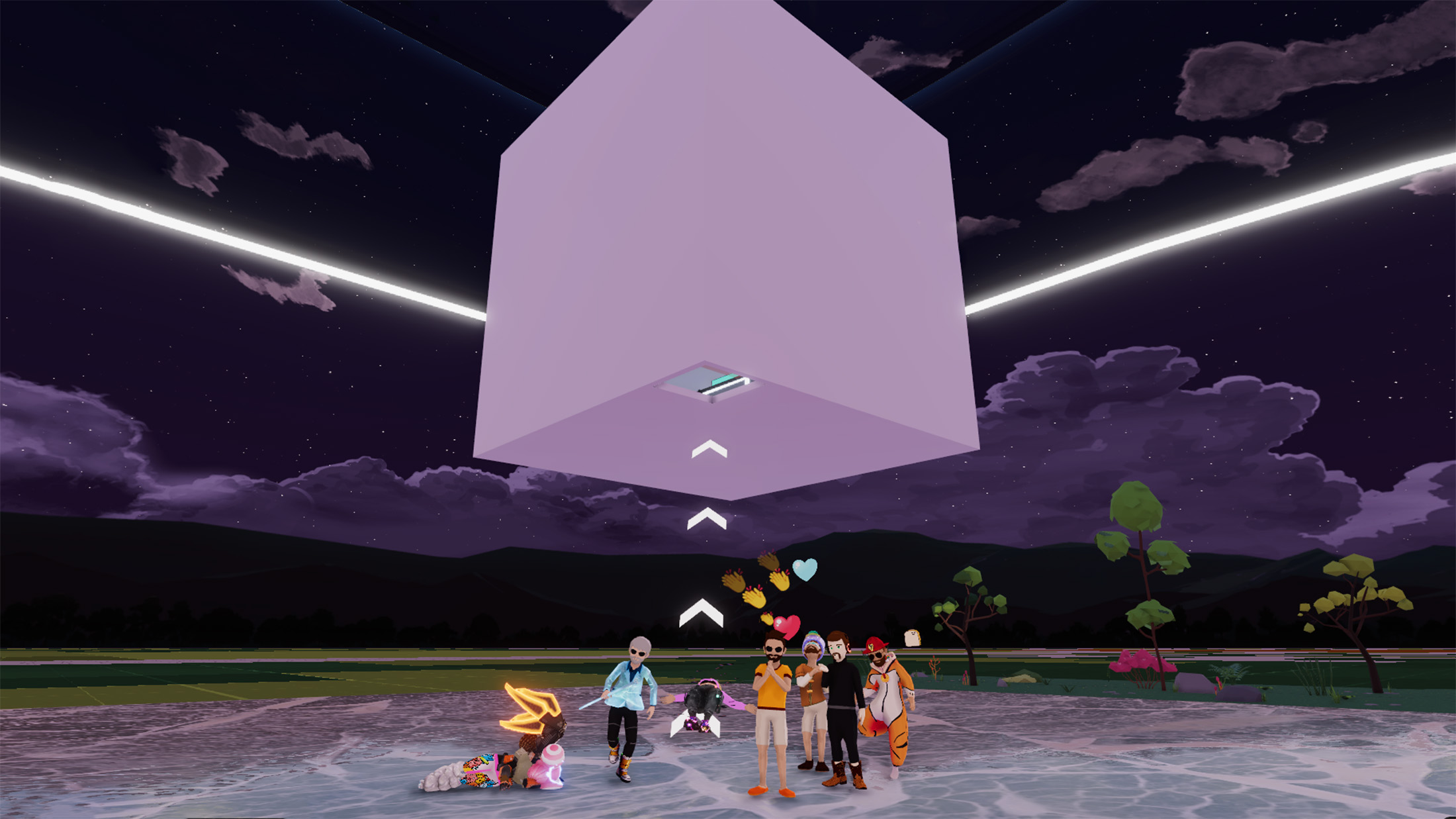 Visitors started their journey at Edifice Metaversal in Decentraland (2, -39), then could find a teleport to a secret location where there were four more cubes to explore. We also hosted two community tours in collaboration with The WIP Meetup and ABC Decentraland, and welcomed 212 visitors in three days.