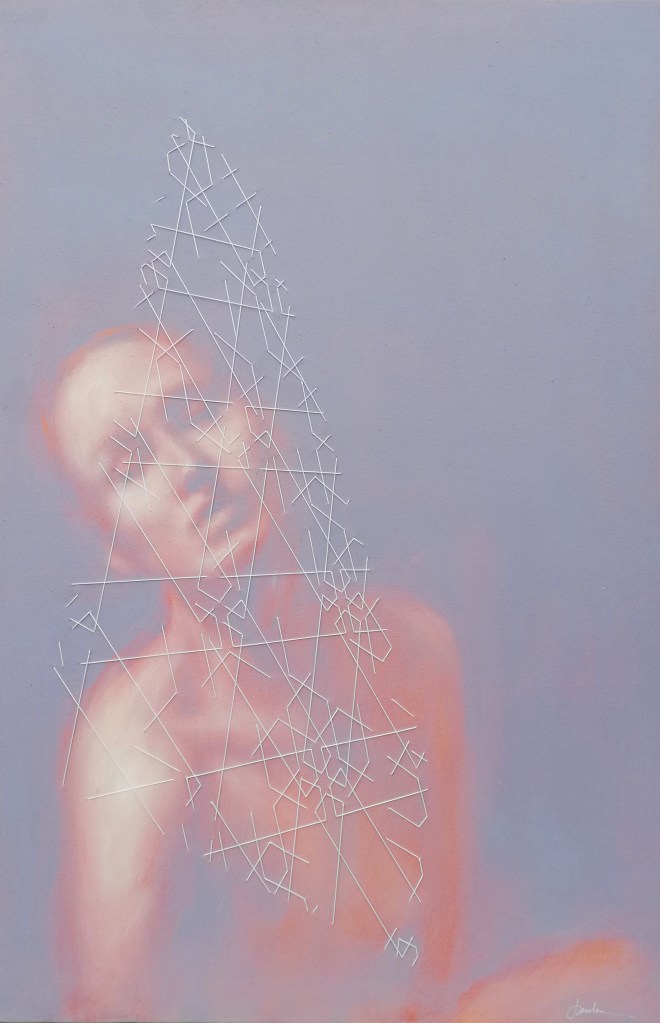 Shard (2019) – oil paint, fluorescent pigment and embroidery on canvas
