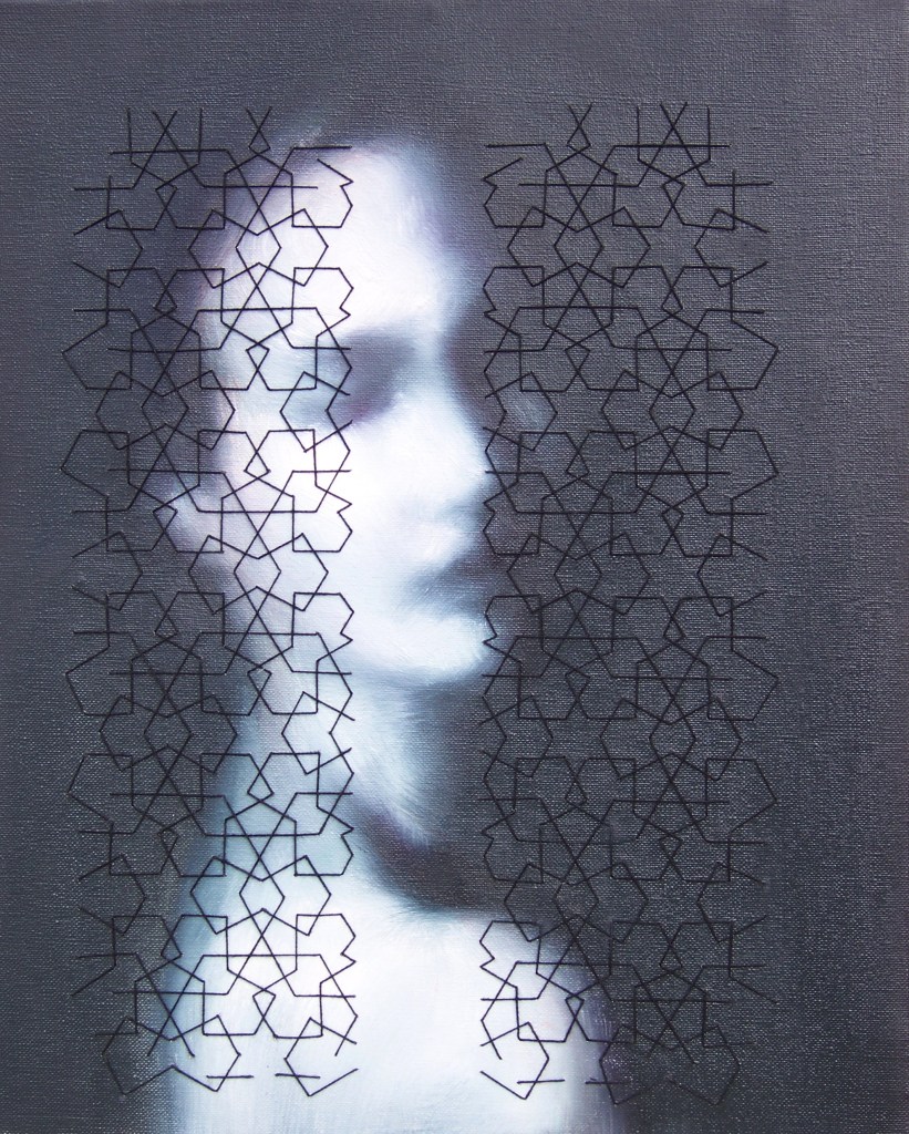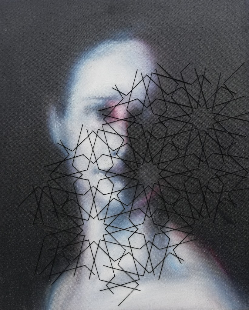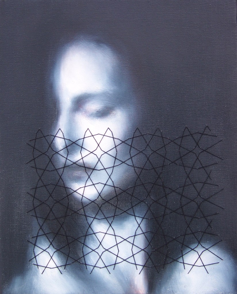 Oracle I (2019) oil and embroidery on canvas 33 x 41 cmOracle II (2019) oil and embroidery on canvas 33 x 41 cmOracle III (2019) oil and embroidery on canvas 33 x 41 cmOracle IV (2019) oil and embroidery on canvas 33 x 41 cmOracle V (2019) oil and embroidery on canvas 33 x 41 cmOracle I (2019) oil and embroidery on canvas 33 x 41 cm