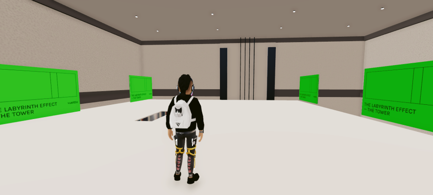 We created two separately located installations for The Labyrinth Effect: the Tower Labyrinth, a three-story high tower within a New York style gallery building in Decentraland’s Indie Village complex, and The Pyramid Labyrinths, six individual pyramids installed across the Edifice Metaversal building.